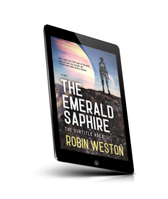 “A figure in a futuristic suit stands on a rocky terrain with large planets in the sky. Book cover design.”
