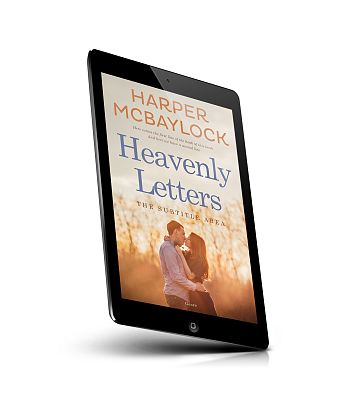 “A couple stands lovingly close in a field with tall grass, with titles and text above them against a soft sky backdrop.”