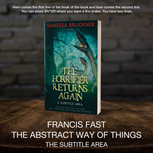 This book cover has 4 lines for the title, 1 line for the subtitle, 1 line for the author, 2 lines for the hook, and finally 1 line for the genre.