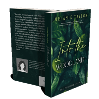 “Book cover features lush green leaves and moss with elegant cursive and serif text. Forest theme with a dark, natural color palette.”