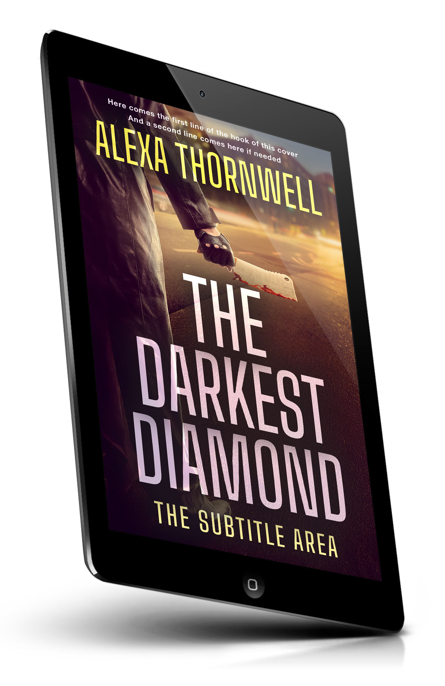 Tags: thriller, suspense, crime, mystery, noir, urban, street, nighttime, foggy, backlit, silhouette, leather jacket, gloved hand, butcher knife, bloodstain, danger, pursuit, revenge, gritty, cinematic lighting