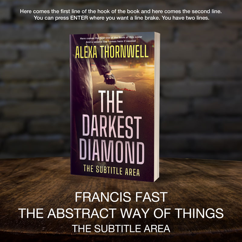 This book cover has 3 lines for the title, 1 line for the subtitle, 1 line for the author, 2 lines for the hook.