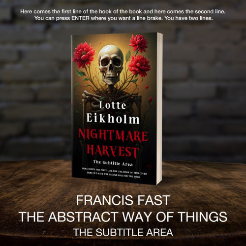 Tags: skeleton, flowers, red blossoms, eerie, dark, skull, gothic, floral, bones, mysterious, petals, haunting, macabre, art, dark fantasy, surreal, vibrant, nature, ominous, contrast, premade cover, book cover design, self-publishing, ebook cover, print ready