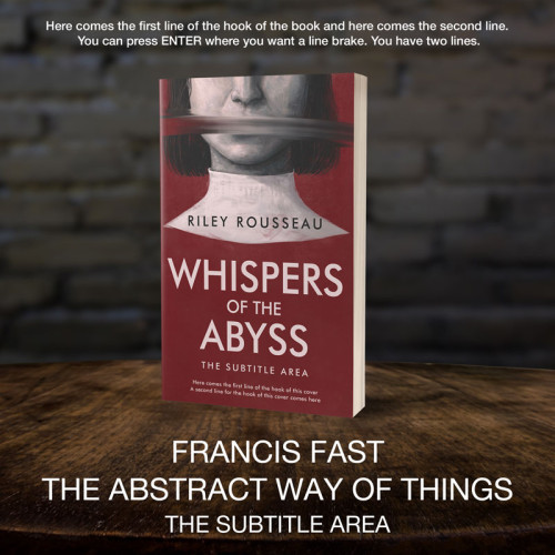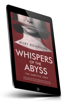 “A book cover shows a woman's face partially obscured by a bar, with the title "Whispers of the Abyss" below. The background is red.”