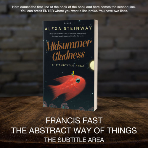 This book cover has 2 lines for the title, 1 line for the subtitle, 1 line for the author, 2 lines for the hook, and finally 1 line for the genre.