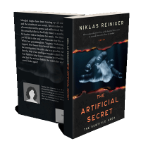 “A hand, highlighted in blue tones, with fingers curled, is the focal point of a dark, dramatic book cover.”