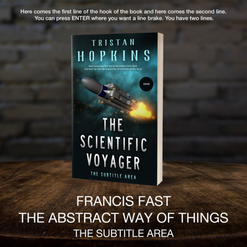 This book cover has 3 lines for the title, 1 line for the subtitle, 2 lines for the author, 2 lines for the hook, and finally 1 line for the genre.