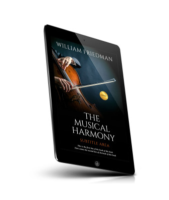 “A dark background features a cellist playing a cello, with a golden genre sticker and the title "The Musical Harmony" prominently displayed.”