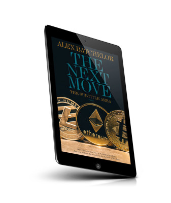 “A book cover featuring cryptocurrency coins, including Bitcoin and Ethereum, with a dark background and gold and blue text overlays.”