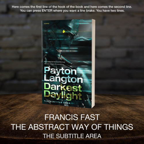 This book cover has 2 lines for the title, 1 line for the subtitle, 2 lines for the author, 2 lines for the hook, and finally 1 line for the genre.