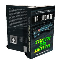 “A futuristic car speeds on a blurry road, with bold text "Truth or Death" and a tagline at the top.”