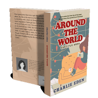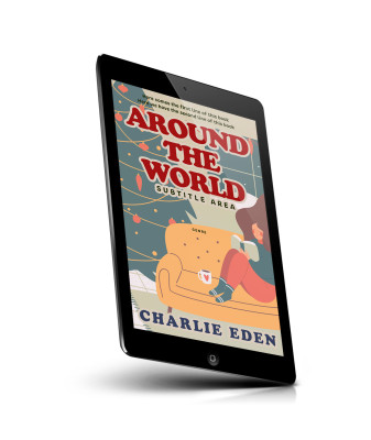 “An illustration of a woman reading on a couch with a mug, a Christmas tree in the background, and the title "Around the World".”