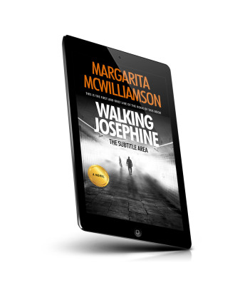 “A misty tunnel with silhouettes walking, featuring a prominent book cover design with a gold badge.”