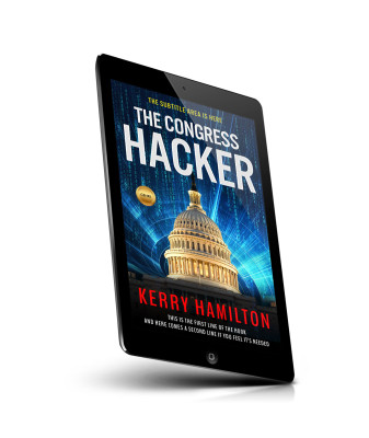 “A book cover featuring the U.S. Capitol with digital binary code and the title "The Congress Hacker."”
