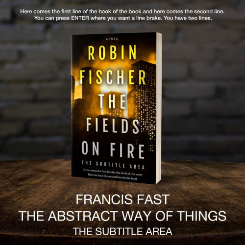 This book cover has 3 lines for the title, 1 line for the subtitle, 2 lines for the author, 2 lines for the hook, and finally 1 line for the genre.
