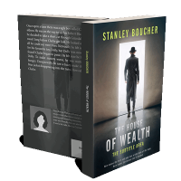 “A man in a long coat and hat walks towards a light-filled doorway. The book title and author's name are displayed prominently.”