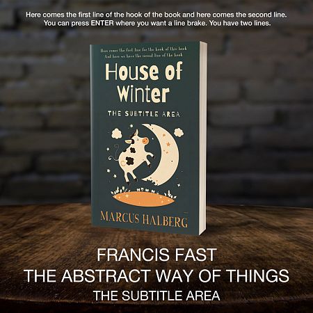 This book cover has 2 lines for the title, 1 line for the subtitle, 1 line for the author, 2 lines for the hook.