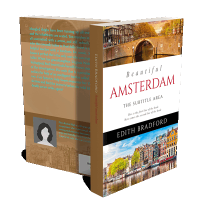 “A book cover featuring Amsterdam's canal houses with bridges and waterways under a clear sky.”