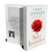 “A vivid red flower with splatters of paint on a white background, featuring book title and author text.”