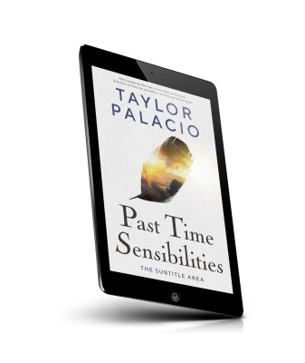 “A book cover with a feather and a dark mark inside it, featuring the title "Past Time Sensibilities."”