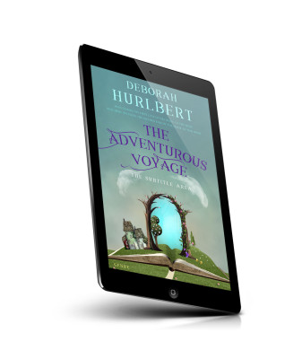 “A whimsical book cover with a tree-arch, house, and hills on an open book under a dreamy sky.”