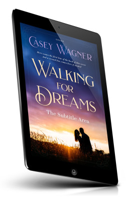 “Silhouetted couple standing in a field at sunset, with a purple and orange sky.”
