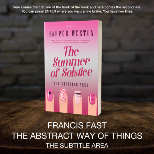 This book cover has 3 lines for the title, 1 line for the subtitle, 1 line for the author, 2 lines for the hook, and finally 1 line for the genre.