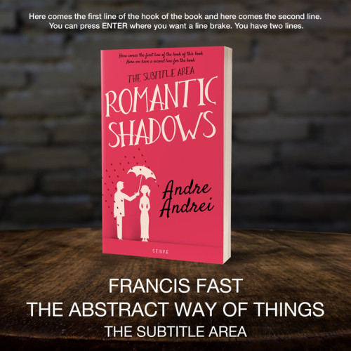“A pink book cover with a man holding an umbrella over a woman, with the title "Romantic Shadows" and the author's name "Andre Andrei."”