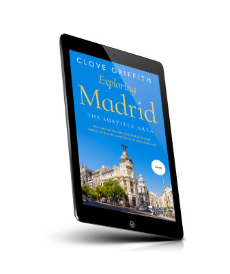 “A cityscape of Madrid with historic buildings and a clear blue sky.”