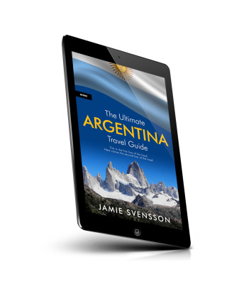 “A travel guide cover with the title "The Ultimate Argentina Travel Guide" featuring a mountainous landscape under a flag.”