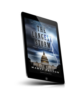 “A dramatic book cover with a stormy sky and lightning, featuring a prominent white-domed building.”