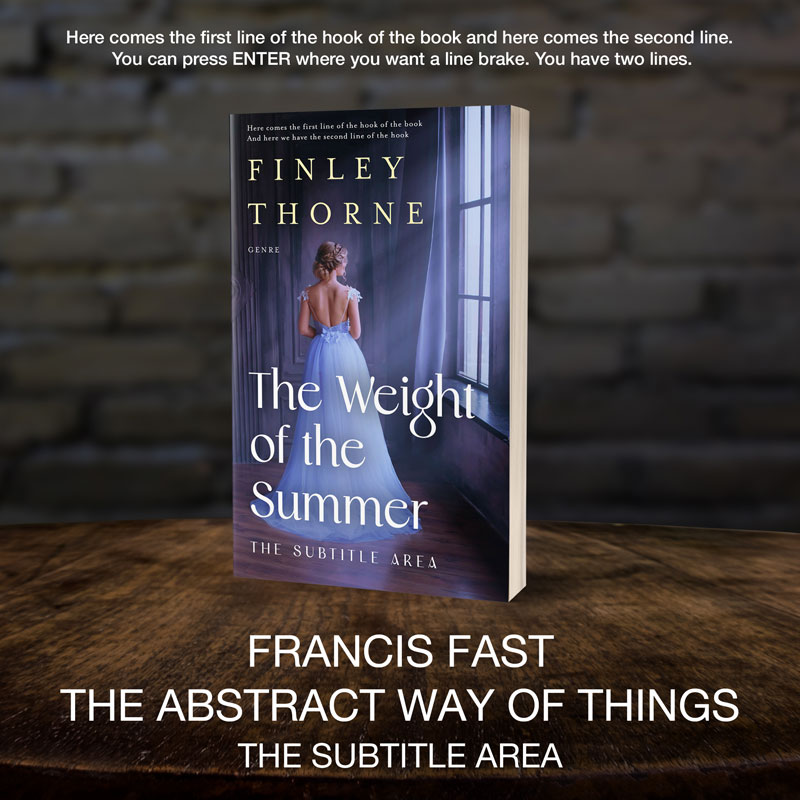 This book cover has 3 lines for the title, 1 line for the subtitle, 2 lines for the author, 2 lines for the hook, and finally 1 line for the genre.