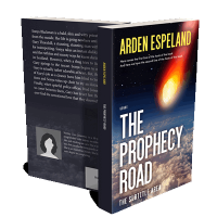 “A meteor streaks across a starry sky above clouds, with a book title and author name displayed prominently.”