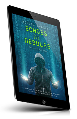 “A hooded figure with glowing hands, surrounded by blue-green binary code. Book title and author are displayed prominently.”