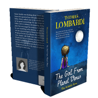 “A girl with pigtails gazes at the moon against a deep blue backdrop. A "genre" badge is on the left.”