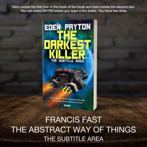 This book cover has 3 lines for the title, 1 line for the subtitle, 1 line for the author, 2 lines for the hook, and finally 1 line for the genre.