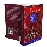 “A blue spiky sphere with a gold seal floats among red blood cells; light text on top and bottom features the book's title and author's name.”