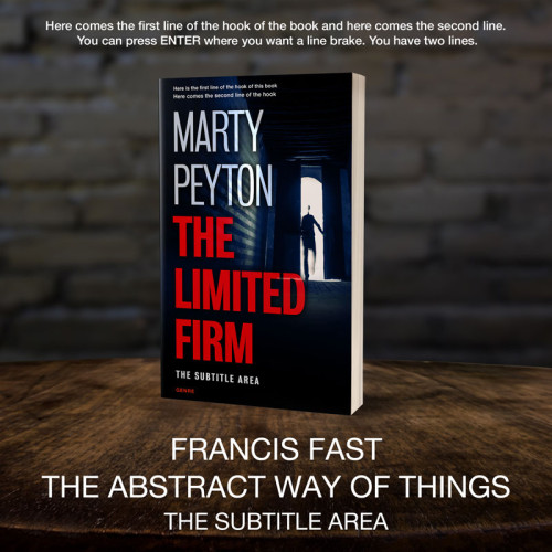 This book cover has 3 lines for the title, 1 line for the subtitle, 2 lines for the author, 2 lines for the hook, and finally 1 line for the genre.
