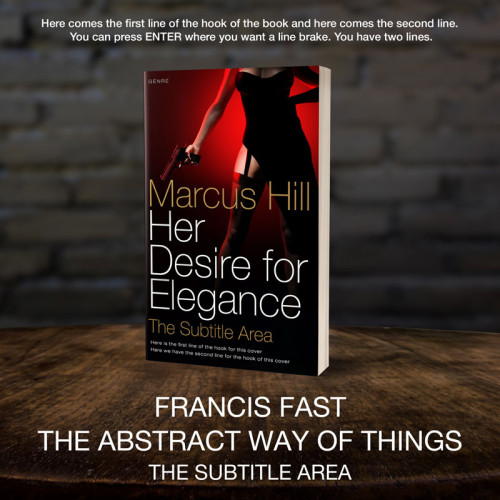 This book cover has 3 lines for the title, 1 line for the subtitle, 1 line for the author, 2 lines for the hook, and finally 1 line for the genre.