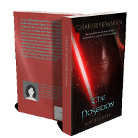 “A mysterious hooded figure with a glowing red light beam in a dark, smoky atmosphere. The title "The Poseidon" is at the bottom.”