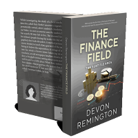 “Book cover with financial theme, featuring coins, charts, and graphs with a dark background.”