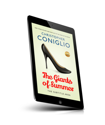 “A book cover featuring a black high-heeled shoe and bold red title text: "The Giants of Summer."”