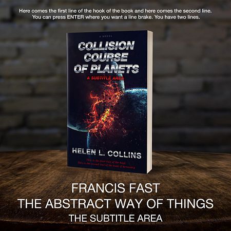 This book cover has 3 lines for the title, 1 line for the subtitle, 1 line for the author, 2 lines for the hook, and finally 1 line for the genre.