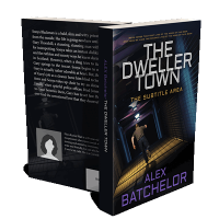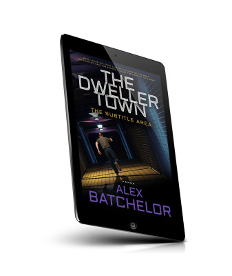 “A person running in a dimly lit corridor with a blue tint, with the book title and author’s name displayed prominently above.”