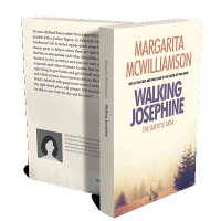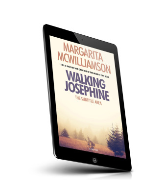 “Book cover for "Walking Josephine" by Margarita McWilliamson, featuring a foggy forest scene with scattered trees.”