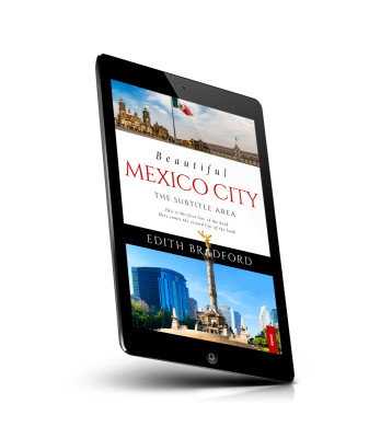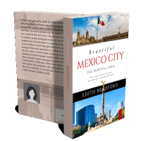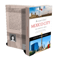 “A book cover featuring photos of Mexico City landmarks and buildings, with a Mexican flag flying.”