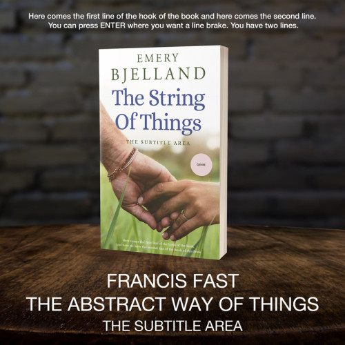 This book cover has 2 lines for the title, 1 line for the subtitle, 2 lines for the author, 2 lines for the hook, and finally 1 line for the genre.