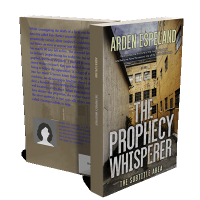 “A worn, aged building with peeling paint and many windows forms the background for the bold, weathered title text of a book cover.”