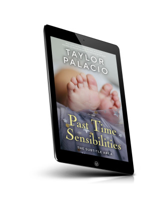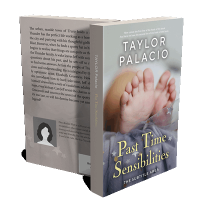 “Close-up of a baby's feet with the title "Past Time Sensibilities" and author "Taylor Palacio."”