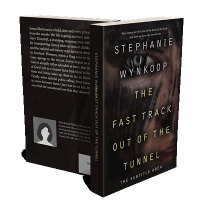 “A close-up of a shadowed, introspective face with bold text overlay promoting a book titled "The Fast Track Out Of The Tunnel."”